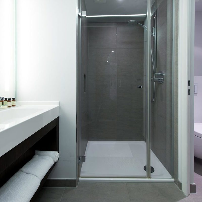 Die gemütlichen Standard Doppelzimmer mit Blick zur Straße: Auf 18 – 20m² harmonieren modernes Design und funktionale Einrichtung perfekt. Die Zimmer sind ideal für Kurzaufenthalte einer Person und für alle Paare, die es gern kuschelig haben. Damit wunderbare Träume im Kingsize-Bett (180 x 200 cm) nicht durch die Straßengeräusche gestört werden, finden sich hochwertige Oropax in jedem Zimmer.