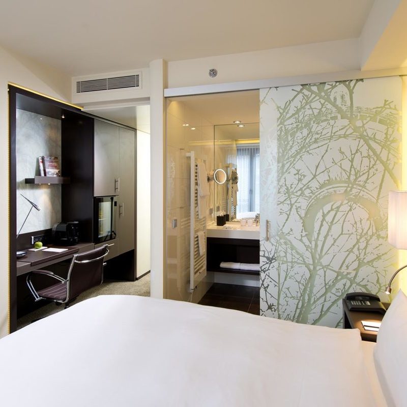 Un peu plus grandes que les chambres double standard, nos chambres DOUBLE COMFORT offrent toutes les commodités de notre catégorie Comfort. Avec leur 22m² ces chambres conviennent aux voyageurs solitaires et les lits de 140×200 ou 160 ×200 sont également parfaits pour les escapades amoureuses. Ces chambres se trouvent aux étages supérieurs de notre établissement et donnent sur la rue animée offrant ainsi une vue sur la capitale. Pour toutes les oreilles sensibles, nos bouchons d’oreilles garantissent un sommeil parfait.
