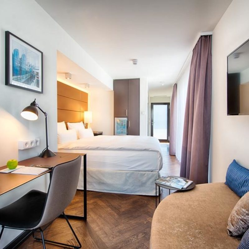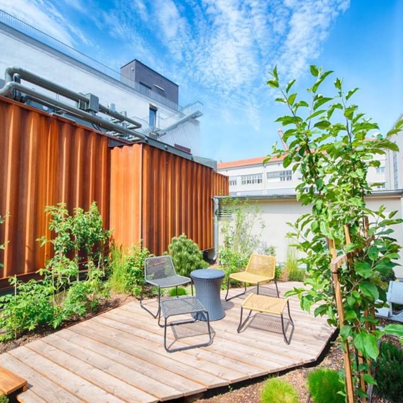 Les chambres de la catégorie COMFORT CONTAINER sont nos chambres les plus originales. Ces 4 chambres, aménagées dans des containers de 25m², sont situées sur le toit du bâtiment voisin (3ème étage) et donnent sur la cour intérieure. Le design de cette catégorie est fin et raffiné. Les 4 containers sont entourés d’une charmante terrasse/ jardin urbain où poussent notamment des pommiers et des fraisiers. Inaugurées au Printemps 2017 ces chambres au concept insolite rencontrent un franc succès auprès de notre clientèle internationale.